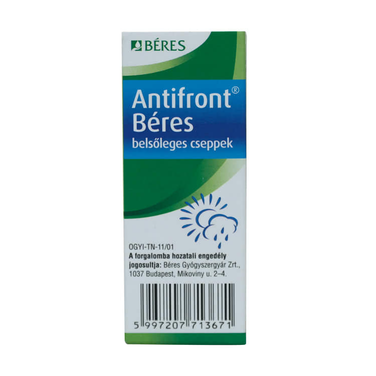 Препарат Антифронт Береш, производства Береш Фарма, представлен в виде прозрачного раствора для орального применения. Медикамент фасуется в флаконы из темного стекла по 30 мл. Каждый флакон оснащен специальной капельницей, для удобства дозирования.