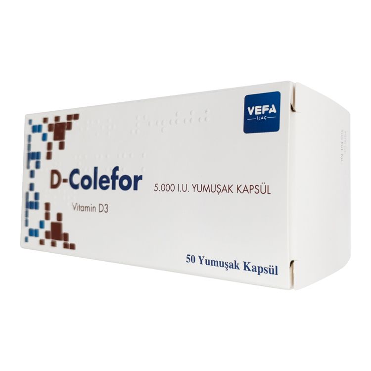 D-Colefor выпускается в форме мягких желатиновых капсул, каждая из которых содержит 5000 МЕ (Международных Единиц) витамина D3. Капсулы имеют овальную форму и наполнены масляным раствором.