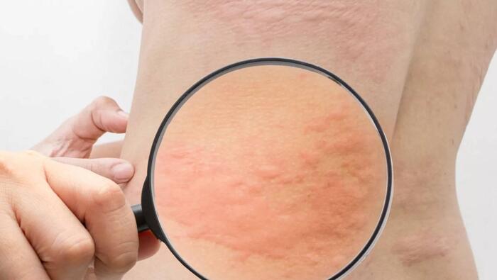 - сыпь розового либо красного цвета, которая может сопровождаться отечностью, в некоторых случаях она имеет желтоватый или коричневый оттенок;