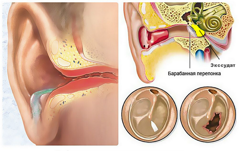 При гнойной форме отита присутствует вероятность выделения экссудата. Он может вылиться в сторону наружного уха, но чаще всего – во внутреннее.