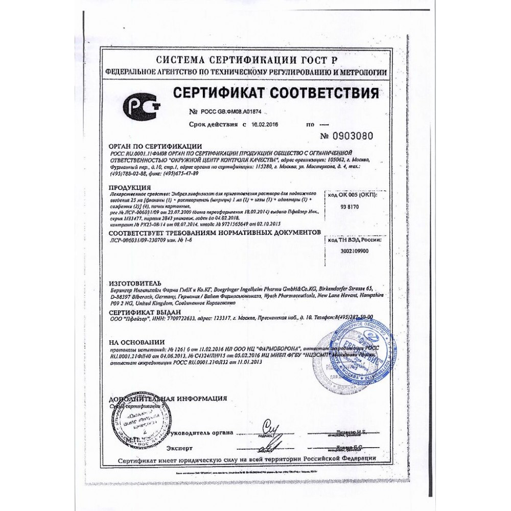 Препарат следует содержать при низкой влажности среды с температурным диапазоном от 2 до 8 °C, избегая замораживания. Хранить в заводской упаковке для защиты от света. Изолировать от попадания в детские руки..