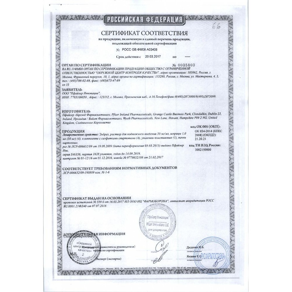 Прежде чем купить Энбрел 50мг в ближайшей аптеке, нужно обязательно проконсультироваться с врачом. Самолечение опасно для Вашего здоровья.