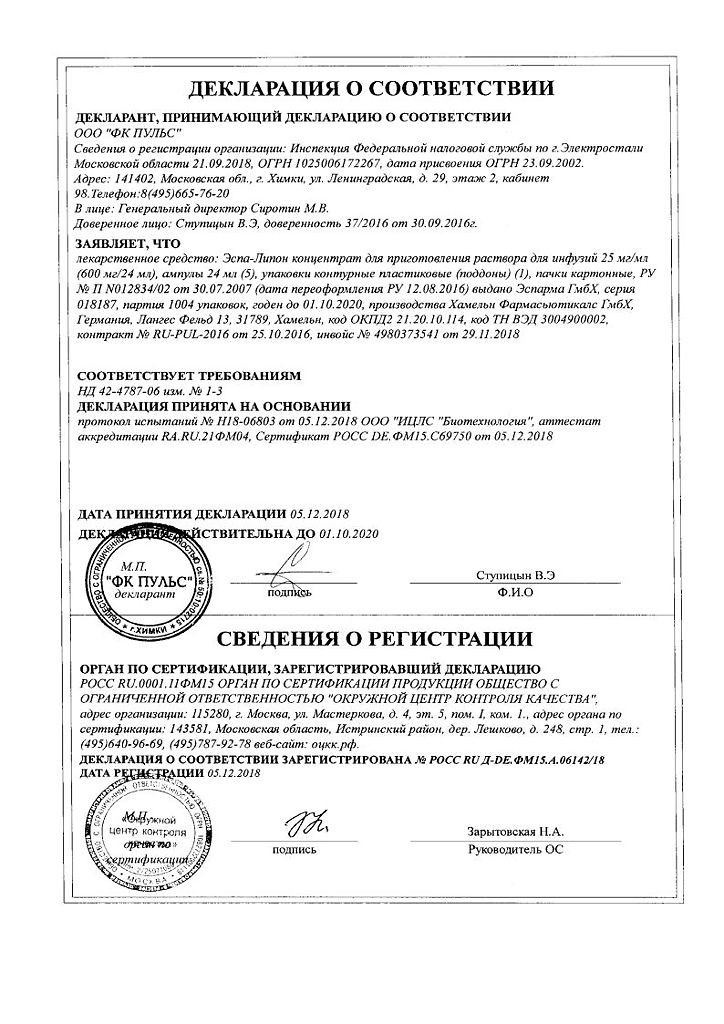 Прежде чем купить Эспа Липон (Эспалипон) ампулы в ближайшей аптеке, нужно обязательно проконсультироваться с врачом. Самолечение опасно для Вашего здоровья.