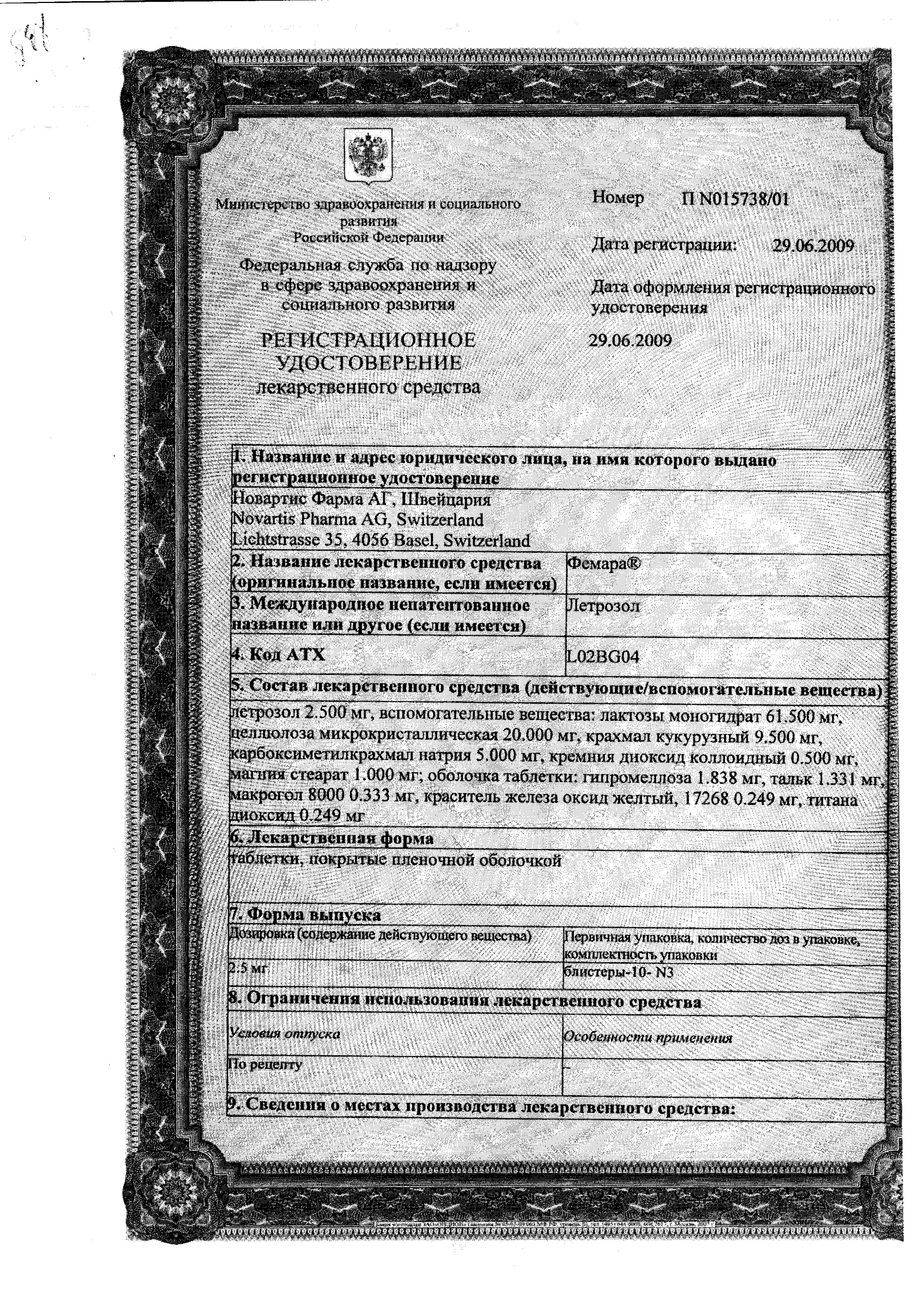 Прежде чем купить Фемара в ближайшей аптеке, нужно обязательно проконсультироваться с врачом. Самолечение опасно для Вашего здоровья.