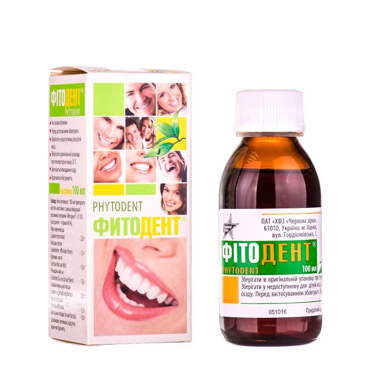 Жидкость для ухода за полостью рта Фитодент предотвращает образование налета. Обладает антибактериальными и антисептическими свойствами и стимулирует процессы обновления и регенерации поражений слизистой оболочки полости рта.