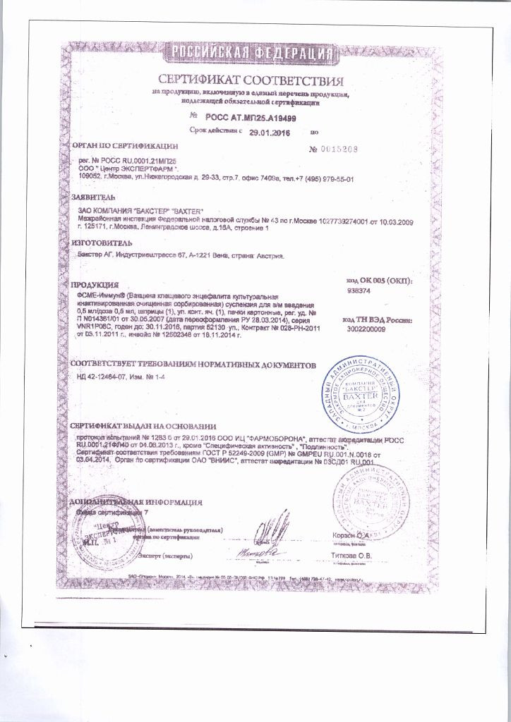 Прежде чем купить ФСМЕ Иммун Инжект вакцина (FSME Immun Inject) 0,5мл в ближайшей аптеке, нужно обязательно проконсультироваться с врачом. Самолечение опасно для Вашего здоровья.