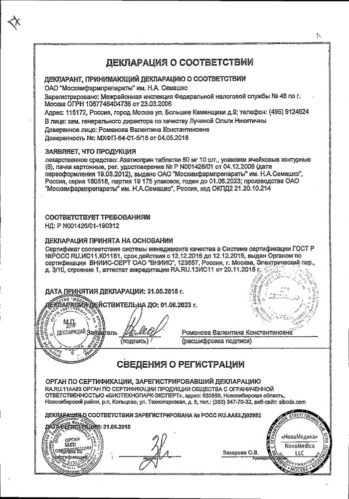 | Азатиоприн (аналог Имурана) таб 50мг N50 | Польша | 2 970 руб. | 50 таблеток |