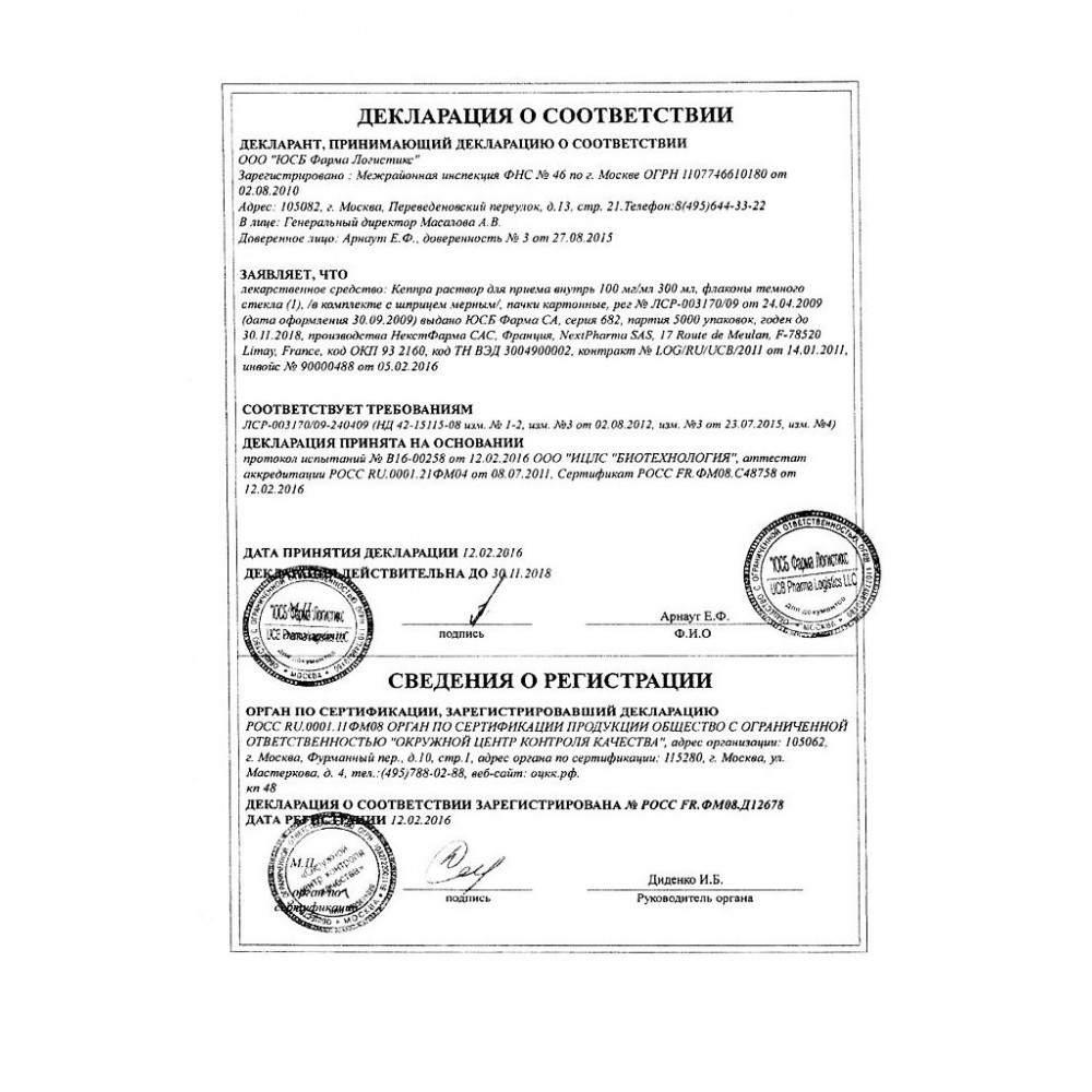 | Кеппра раствор для приема внутрь 100 мг/мл 300мл | Германия | 6 860 руб. | флакон 300мл |