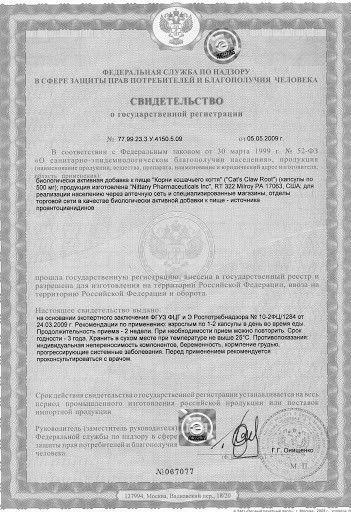 Прием капсул Кошачий коготь (Cats Claw) не оказывает негативного влияния на организм.