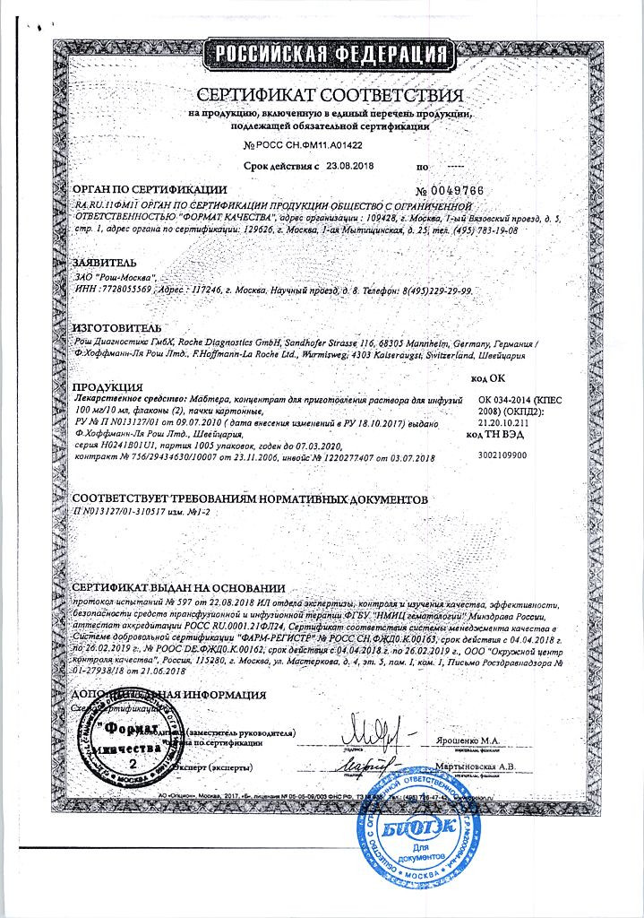 💊 Концентрат для инъекций Мабтера 500мг/50мл №1.