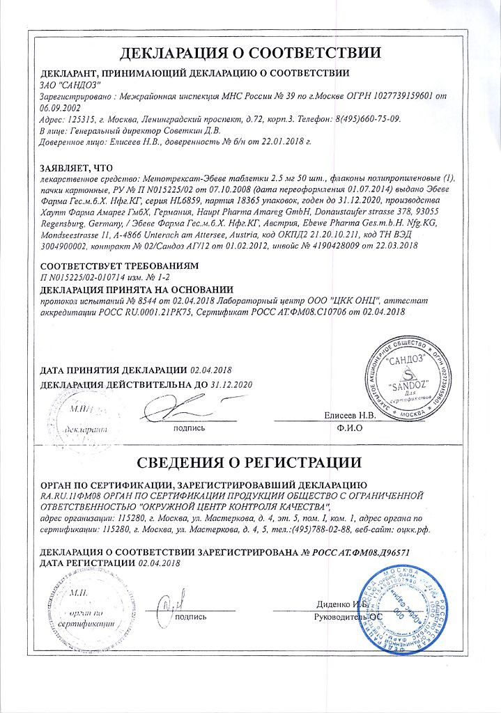 Инструкция Метотрексат