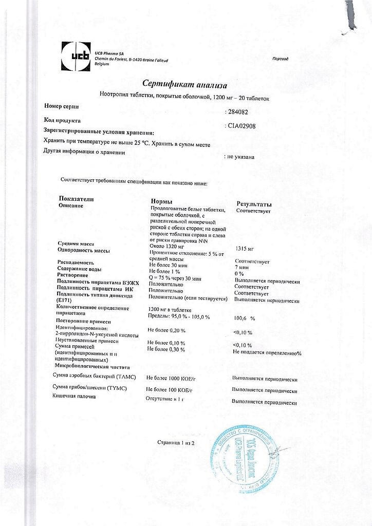 Прежде чем купить Ноотропил таблетки 1200мг в ближайшей аптеке, нужно обязательно проконсультироваться с врачом. Самолечение опасно для Вашего здоровья.