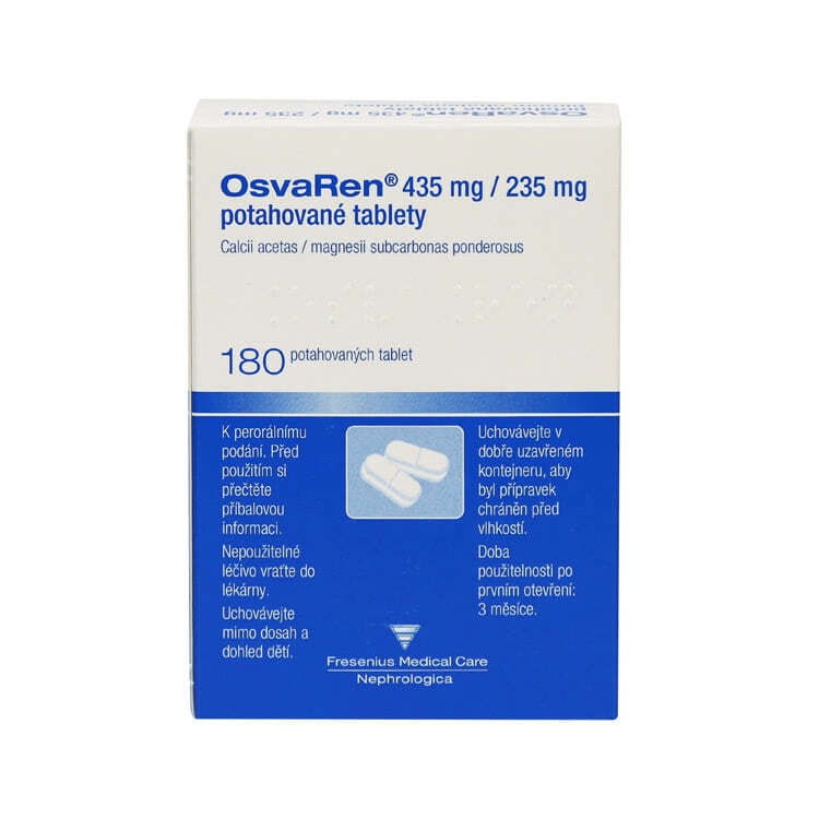 Таблетки ОсваРен представляют собой комбинированный лекарственный препарат, применяемый у пациентов с хронической почечной недостаточностью. Он содержит кальция ацетат и магния гидроксикарбонат, которые действуют как фосфатсвязывающие вещества. Препарат помогает снизить уровень фосфатов в крови, предотвращая развитие гиперфосфатемии и связанных с ней осложнений, таких как кальцификация сосудов и костные нарушения, через: