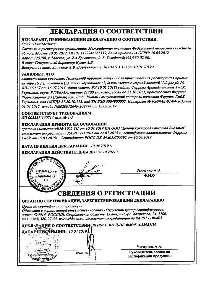 Прежде чем купить Пикопреп в ближайшей аптеке, нужно обязательно проконсультироваться с врачом. Самолечение опасно для Вашего здоровья.