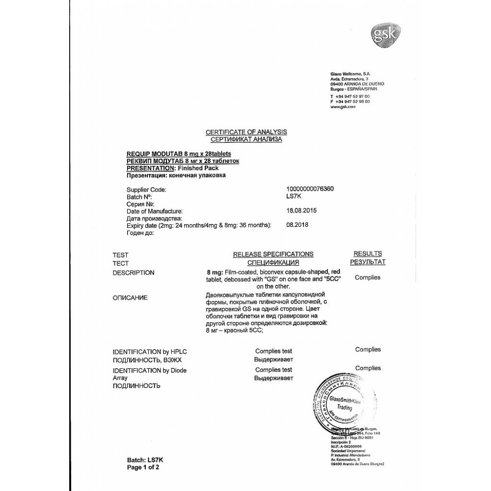 | Реквип Модутаб Requip XL (LP) таблетки 2мг №28 | Испания | 2 990 руб. | 28 таблеток по 2мг |