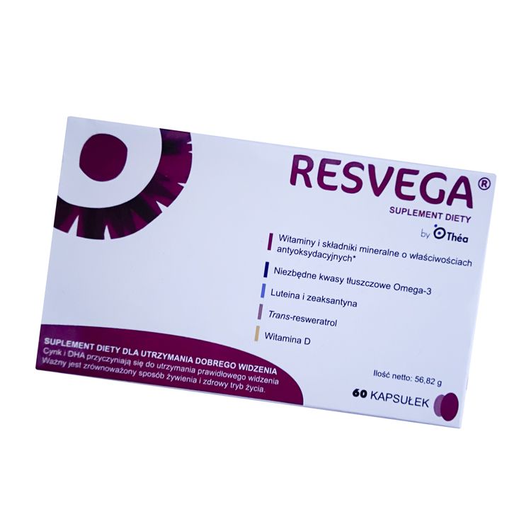 - Препарат Resvega может быть рекомендован как дополнительный источник антиоксидантных витаминов C и E, микроэлементов цинка и меди, омега-3 незаменимых жирных кислот, макулярных пигментов.