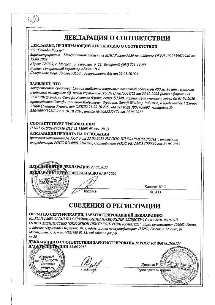 Инструкция Солиан