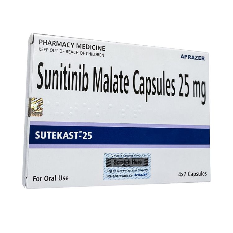 Сунитиниб Sutekast (аналог Сутент) назначают пациентам, которые лечатся от метастатического, распространенного почечно-клеточного рака, локализованных в ЖКТ злокачественных новообразований (гастроинтестинальных стромальных опухолей), нерезектабельных, метастатически высокодифференцированных нейроэндокринных опухолей поджелудочной железы. Основное действующее вещество Сунитиниб, попадая в организм, угнетает активность рецепторов протеинтирозинкиназы. В функции этого фермента входит передача внутриклеточных сигналов. Таким образом, его активность способствует росту и здоровых, и больных клеток. Сунитиниб препятствует разрастанию (пролиферации) опухолевых клеток, образованию в опухоли новых кровеносных сосудов, развитию метастазов. В результате рост опухоли прекращается, её ткани начинают рассасываться, наступает регресс либо ремиссия. Максимум концентрации действующего вещества достигается через 6-12 часов после приема препарата. Оно выводится из организма преимущественно через ЖКТ.