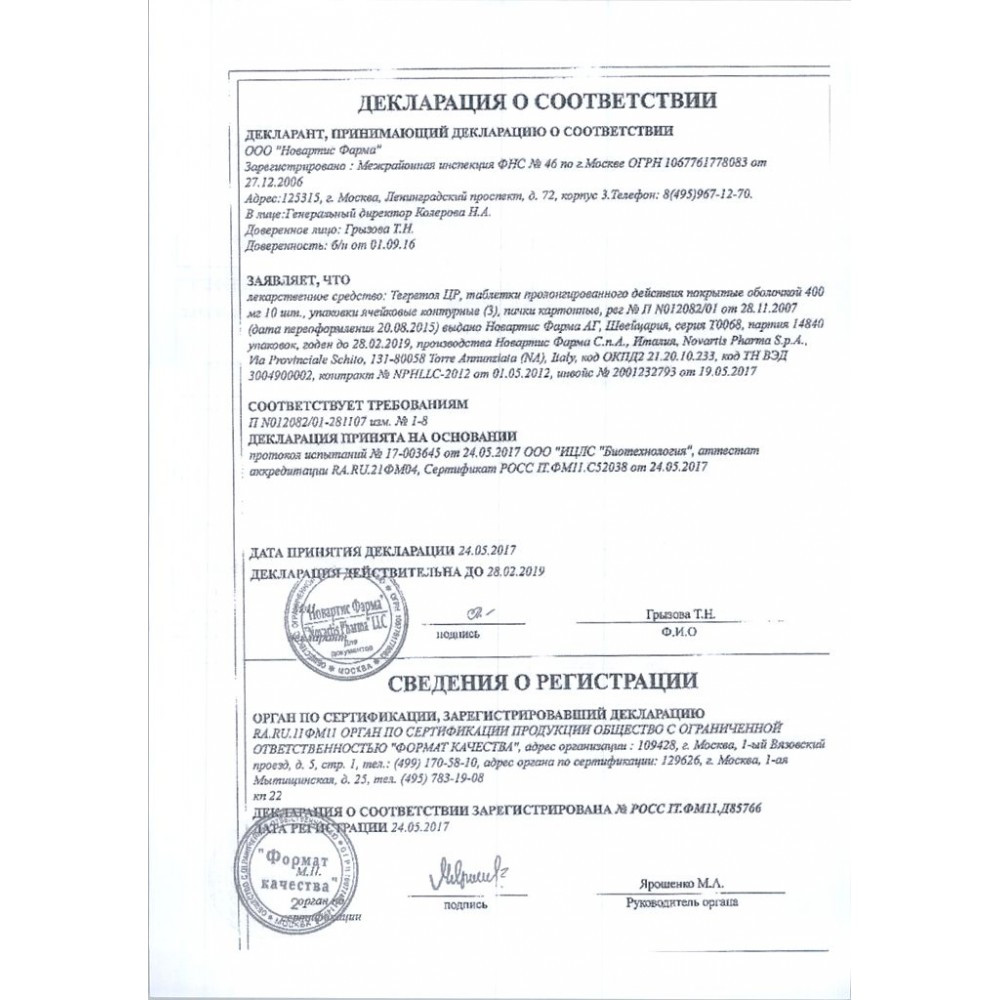 Прежде чем купить Тегретол ЦР (CR) 400мг в ближайшей аптеке, нужно обязательно проконсультироваться с врачом. Самолечение опасно для Вашего здоровья.