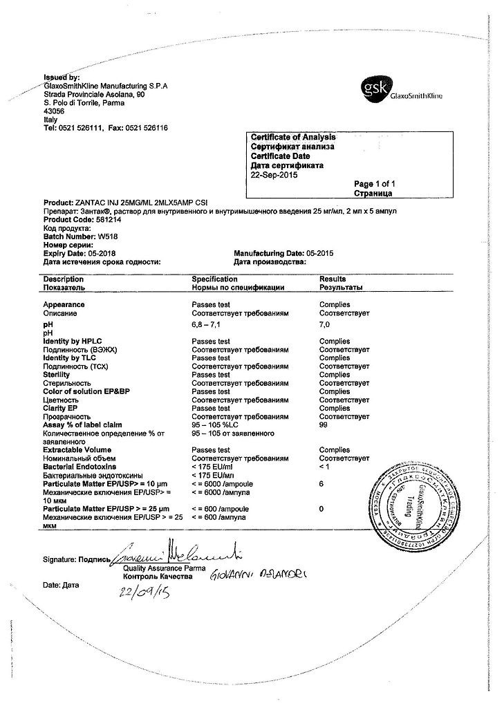 Стоимость аналогов Ранитидин ампулы (Зантак ампулы аналог) Ranitidine injection Aciloc 25мг/мл 2мл №5
